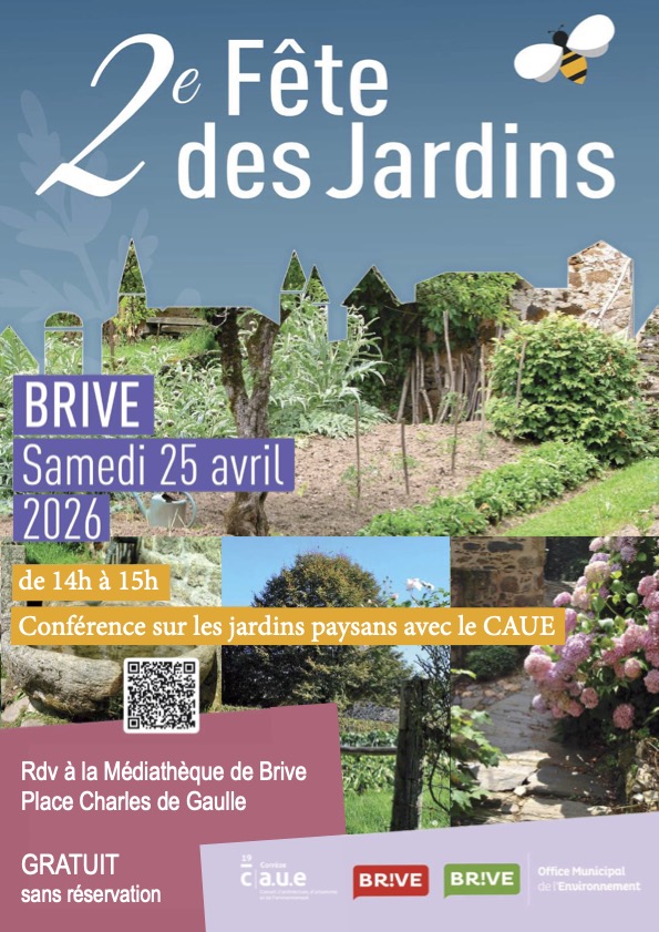 Le CAUE tiendra un stand toute la journée Place du Civoire, à Brive, le samedi 25 avril 2026. N’hésitez pas à venir nous rencontrer pour échanger autour du jardin et plus largement de notre cadre de vie. Notre Paysagiste conseillère animera une conférence gratuite à 14h à la médiathèque sur les jardins paysans de la Corrèze. Venez nombreux…